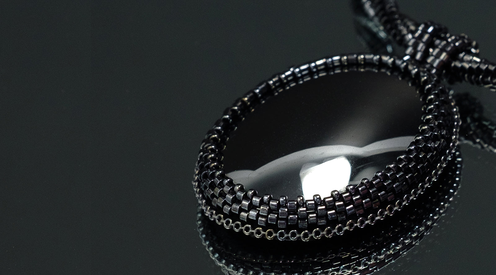 Dynamic handcrafted bracelet made from seed beads in a vibrant mix of black, silver, blue, green, and grey tones. The interplay of these colors evokes fluidity and motion, symbolizing the...